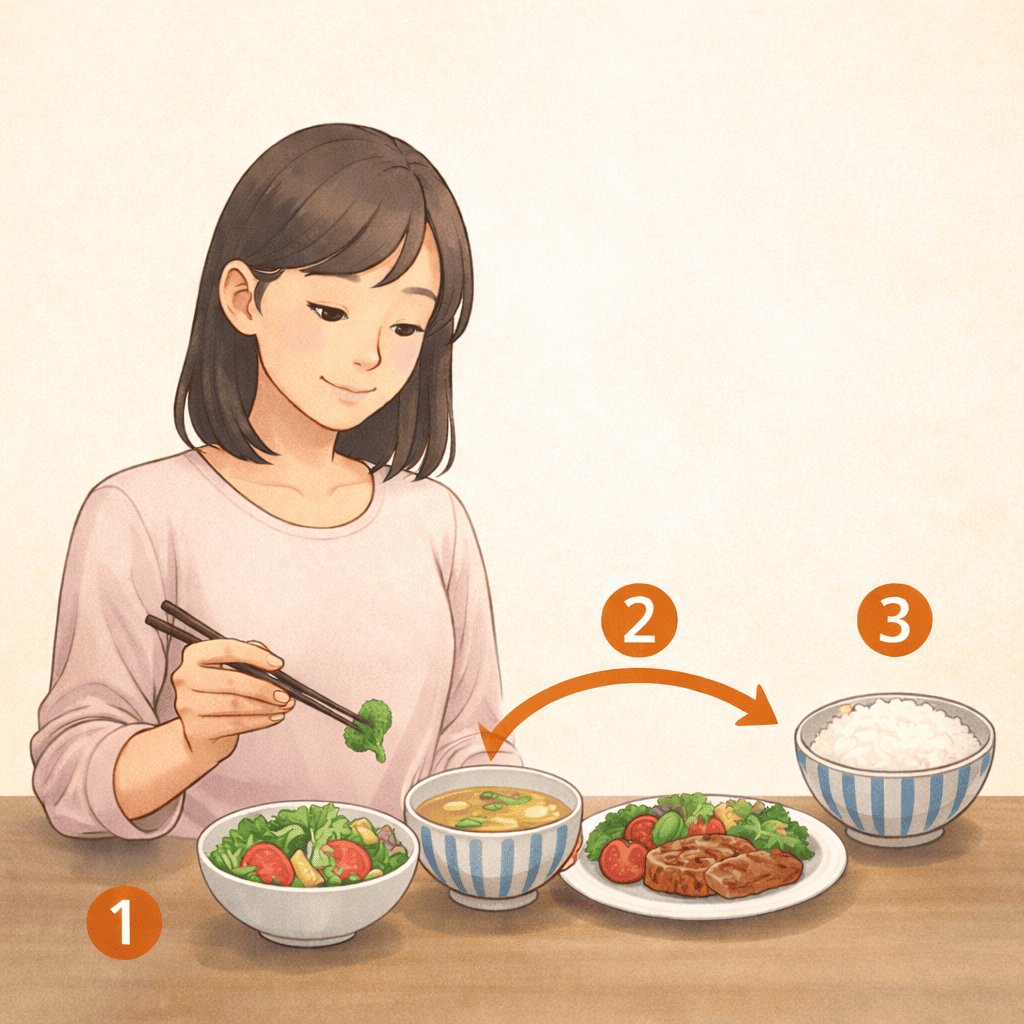 食べる順番を変えるだけで、自然と食べすぎを防げます。
