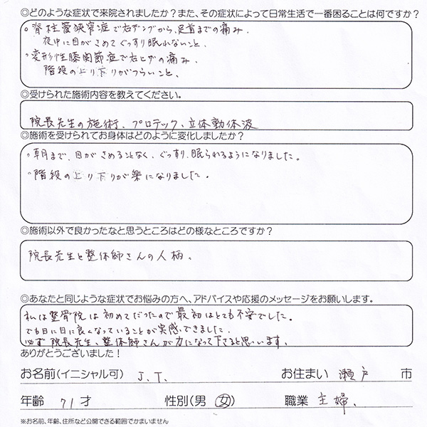 瀬戸市 J.T様 70代 日に日に良くなっていることを実感
